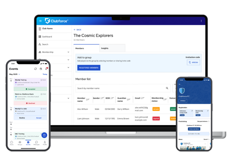 Clubforce is an ecosystem providing an all-in-one management platform for your sports club featuring all the tools you need to manage members, fundraising, communications and your website.