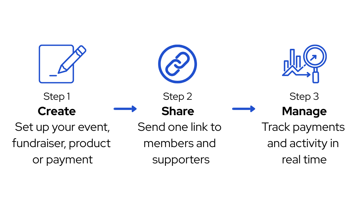 Sell across events, fundraising, merchandise, and payments — all in one place.